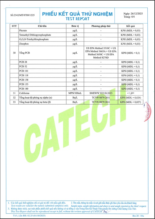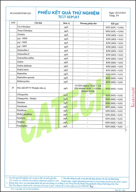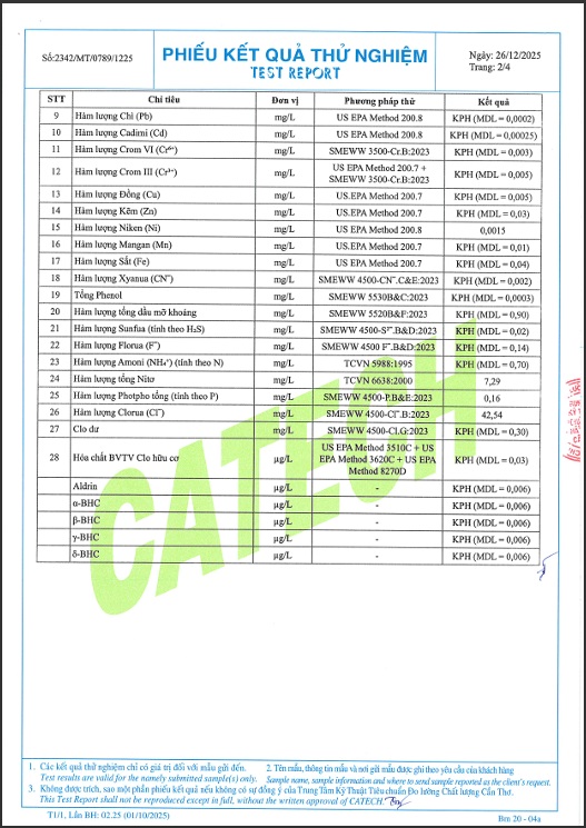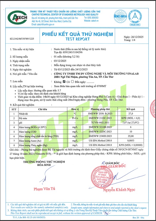 Sau đây là phiếu kết quả thử nghiệm: